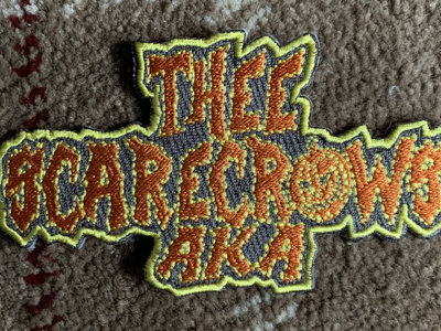 Embroidered patch of Thee Scarecrows AKA logo - 12cm wide x 6.89cm high.