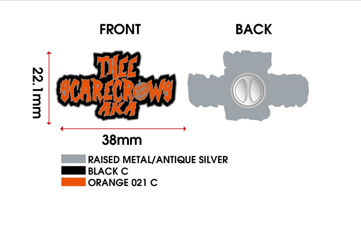Quality enamel pin badges of Thee Scarecrows AKA logo.